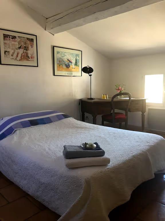 Au pied des sentiers de randonnée de la montagne Sainte Victoire, chère à notre peintre Paul Cézanne, située,à 5 kms d 'Aix en Provence, ma maison vous accueille en chambres d'hôtes dans un environnement calme et boisé. Jardin de 3000 m2 , grande piscine, jardin et cours cloturés.