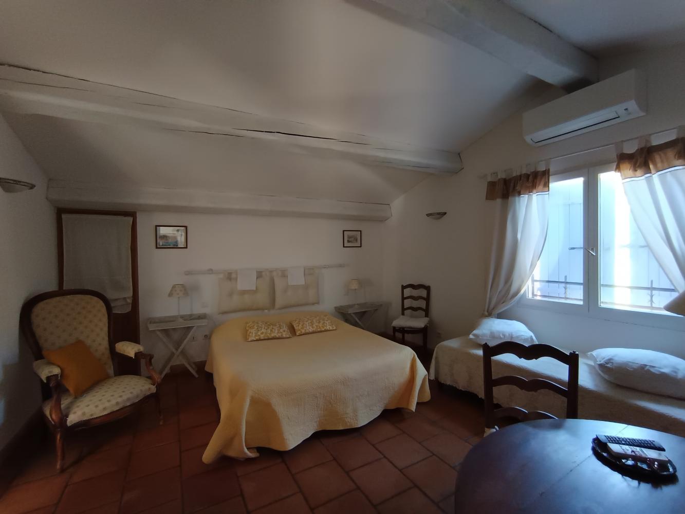 Premier étage: chambre spacieuse comprenant un lit 1.60 x200, clim réversible, téléviseur écran plat. Bibliotèque, bureau, chaises, un fauteuil. Deux petites pièces dans cette chambre : la salle d'eau pouvant se fermer, et une deuxième petite pièce faisant office de dressing avec micro-ondes et petit réfrigirateur . Vaisselle, une bouilloire.