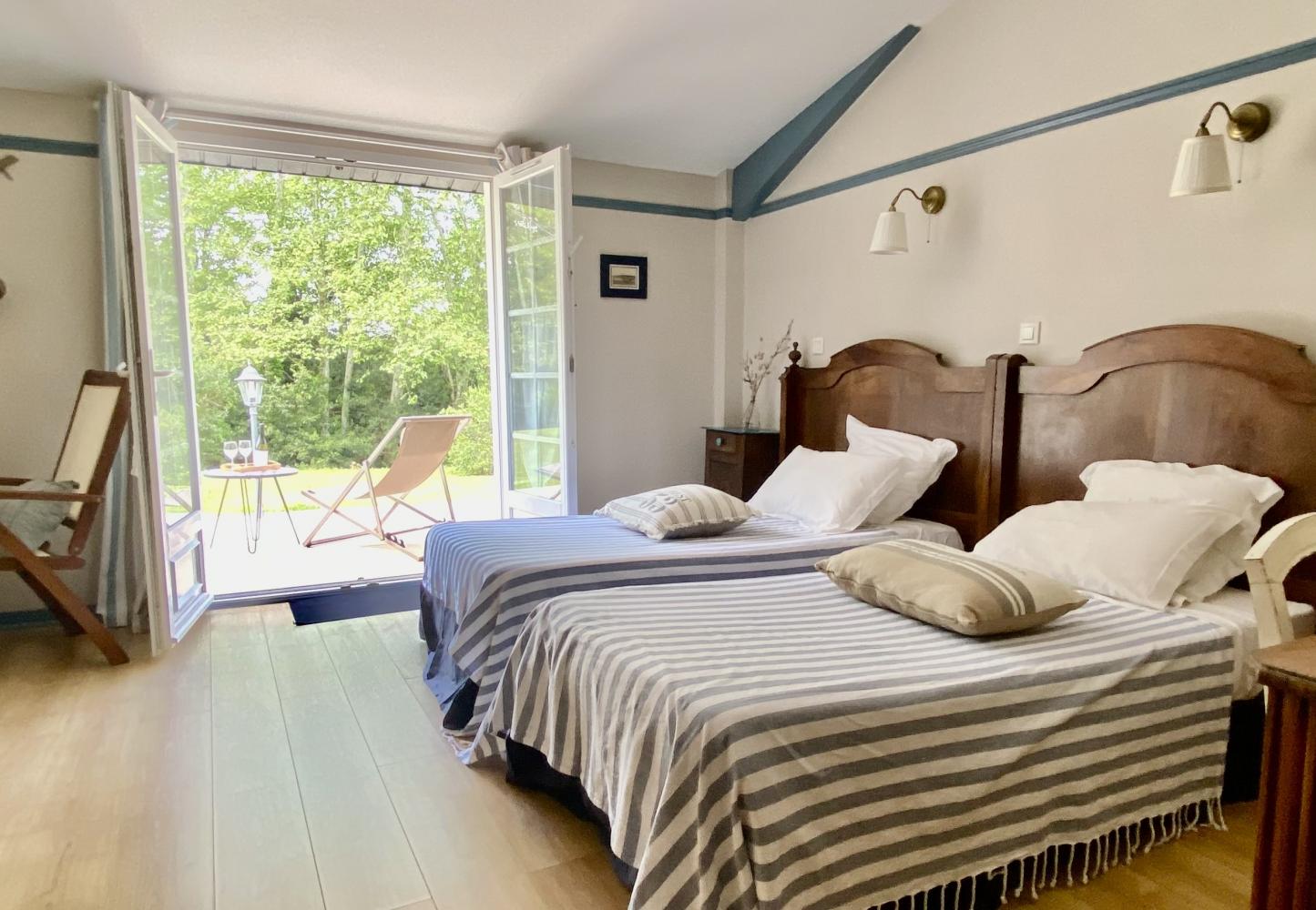 Dans une demeure basco-landaise restaurée, 2 chambres d'hôtes spacieuses et une suite familiale (avec salle de douche/WC privatifs et terrasse privative) vous attendent dans un écrin de verdure à 12 km des plages et de Bayonne, 17 km de Capbreton, 25 km de Biarritz et 40 km de l'Espagne et des Pyrénées.